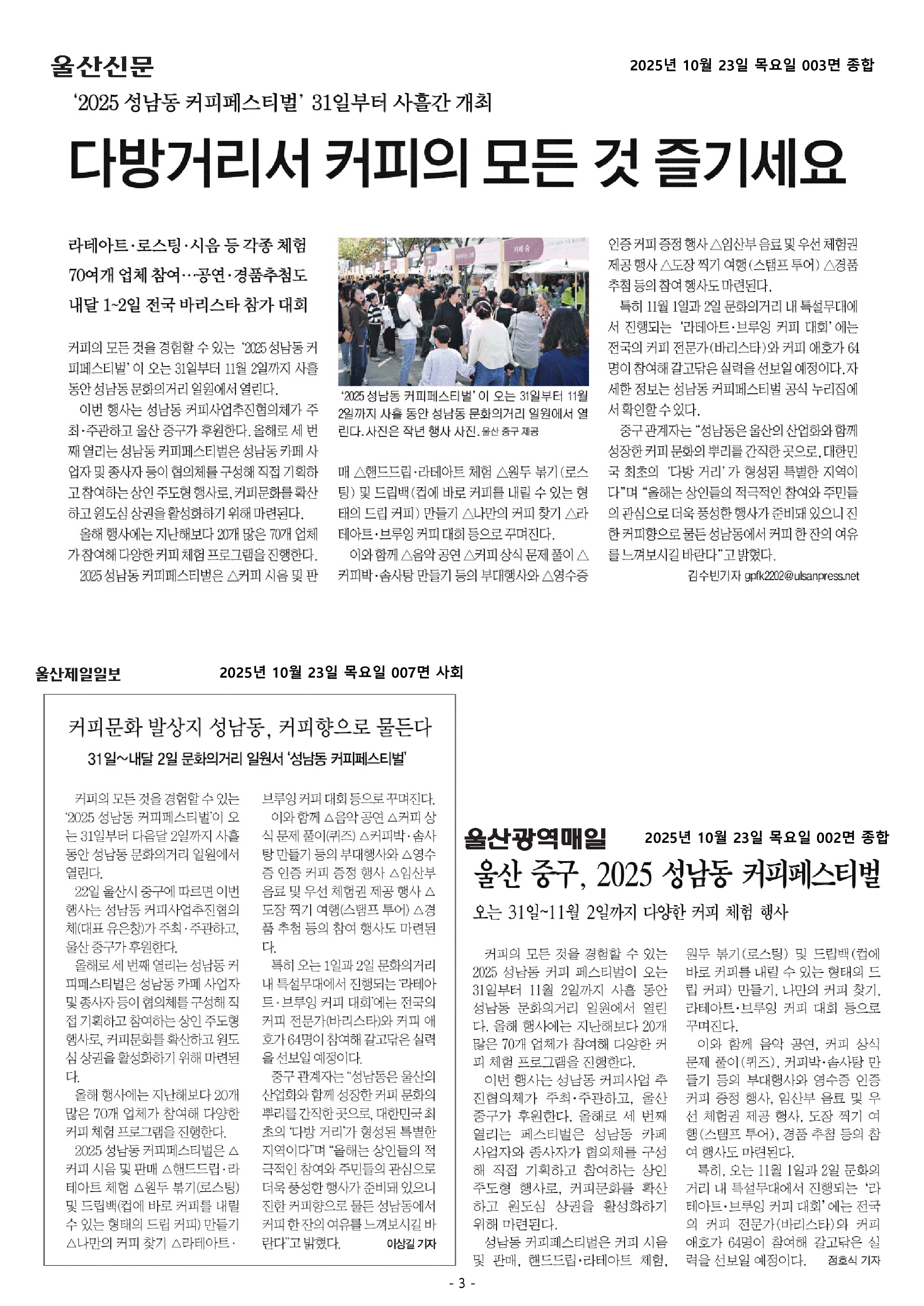 커피향 가득 2025 성남동 커피페스티벌 성료
