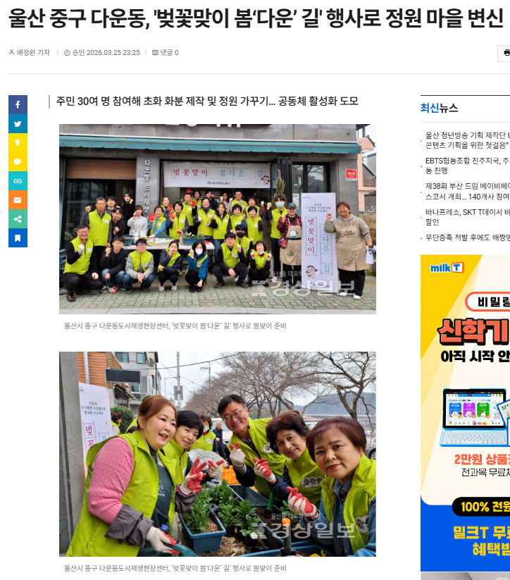 울산 중구 다운동,"벚꽃맞이 봄"다운"길" 행사로 정원 마을 변신