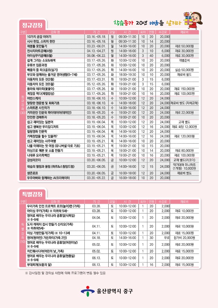 신청문의: 중구 평생학습관(중구 중앙길 136) T. 052) 290-4765~7