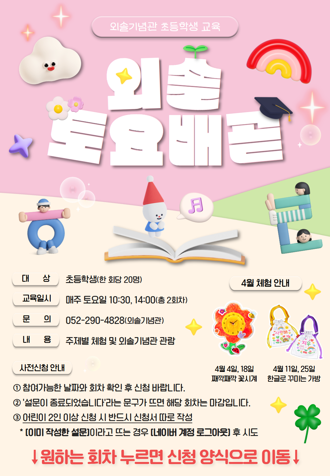 4월 토요 체험 프로그램 <외솔 토요 배곧> 사전신청