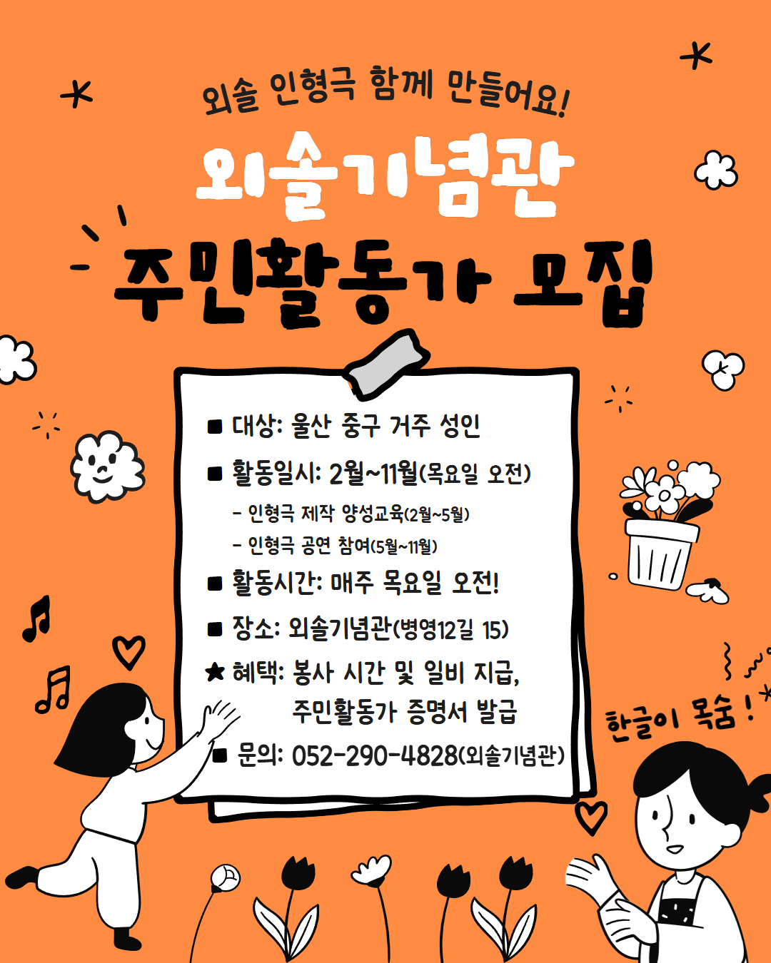 외솔 인형극을 함께 만들어갈 주민활동가를 모집합니다.