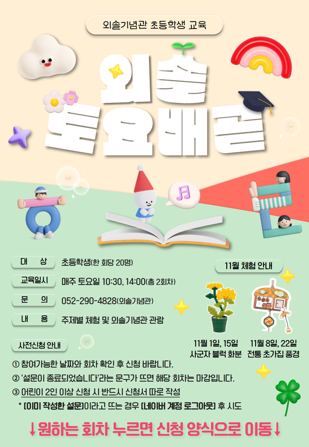 10월 토요 체험 프로그램 <외솔 토요 배곧> 사전신청